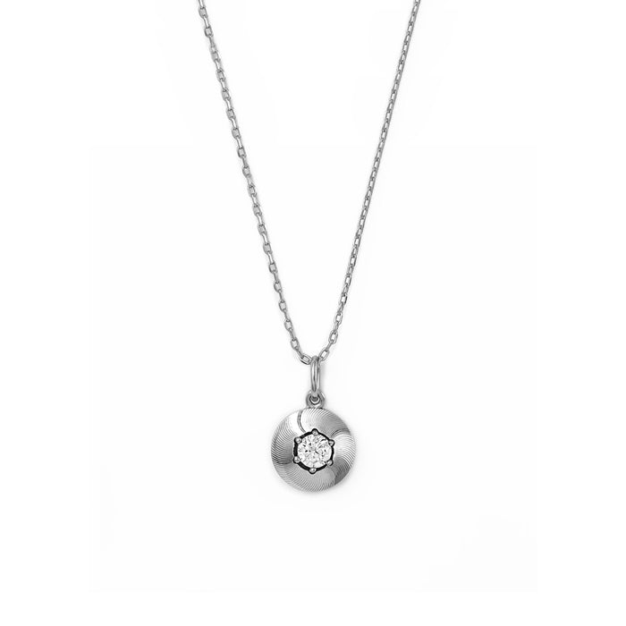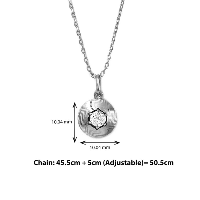 The pendant comes complete with a matching chain, making it the perfect accessory for any occasion. Whether you're dressing up for a formal event or adding a touch of glamour to your everyday look, the Silver Round Illusion Pendant with Chain is sure to impress. Order yours today and elevate your style to the next level.