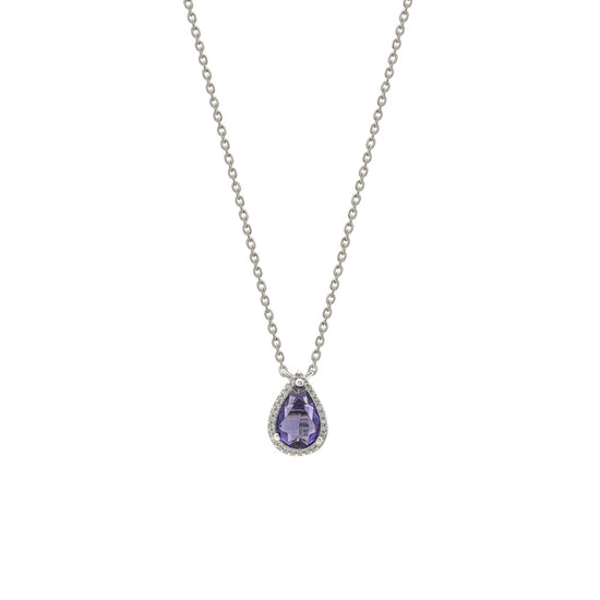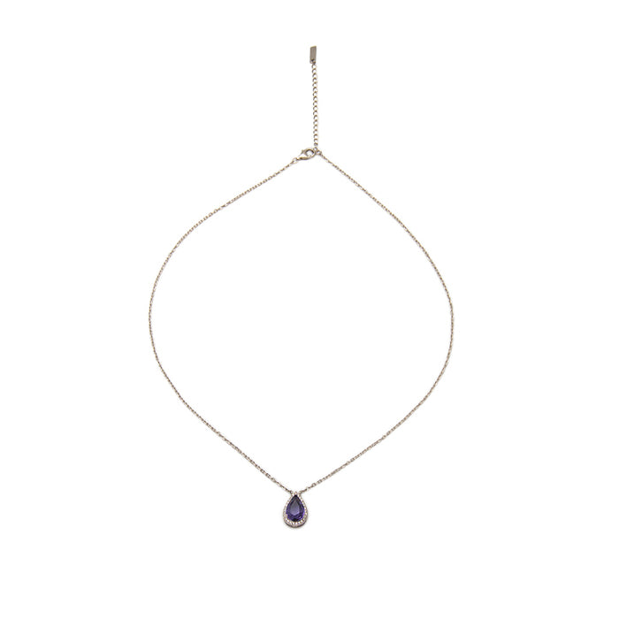 This is a pure silver necklace for women. It has a subtle wine hue necklace in drop shape looking like a fine night jewellery giving pure elegance. This necklace is a great investment for your evening events to make you stand out.