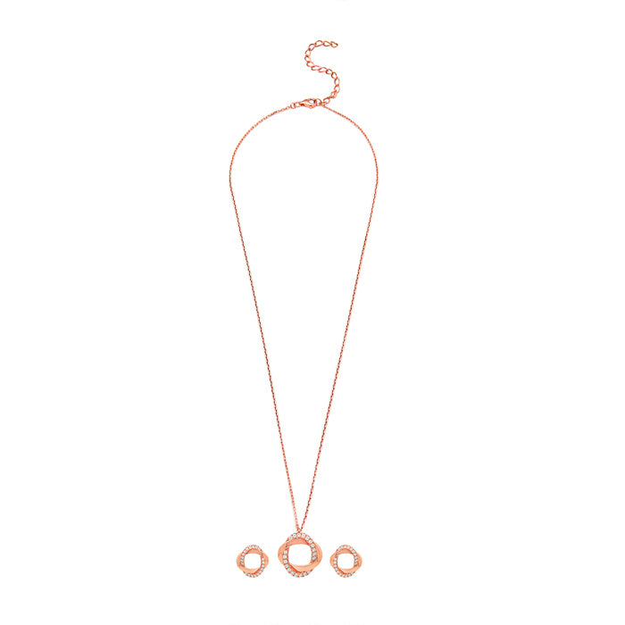 Add a touch of allure to your outfit with our Rose Gold Allure Pendant Set. Embody effortless elegance with this rose gold pendant set that will elevate any look. Stand out with this unique accessory and get ready to shine!