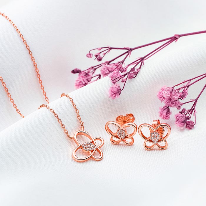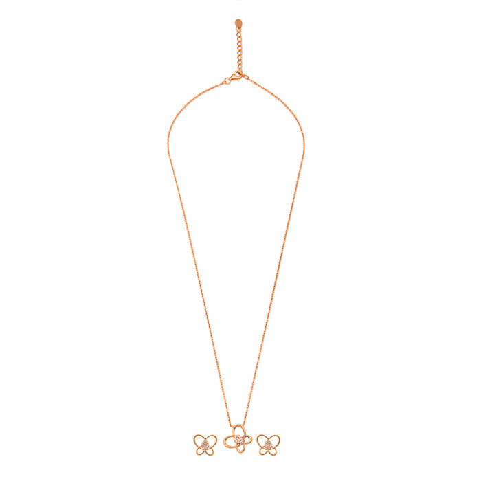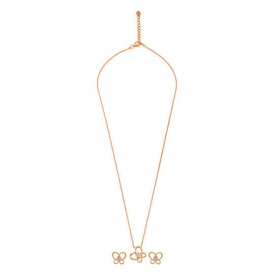 Flaunt your whimsical personality with our Rose Gold Delicate Butterfly Necklace Set. Crafted in silver, this delicate set features a charming butterfly design that will add a playful touch to any outfit. Make a statement and spread your wings with this unique and stylish accessory.