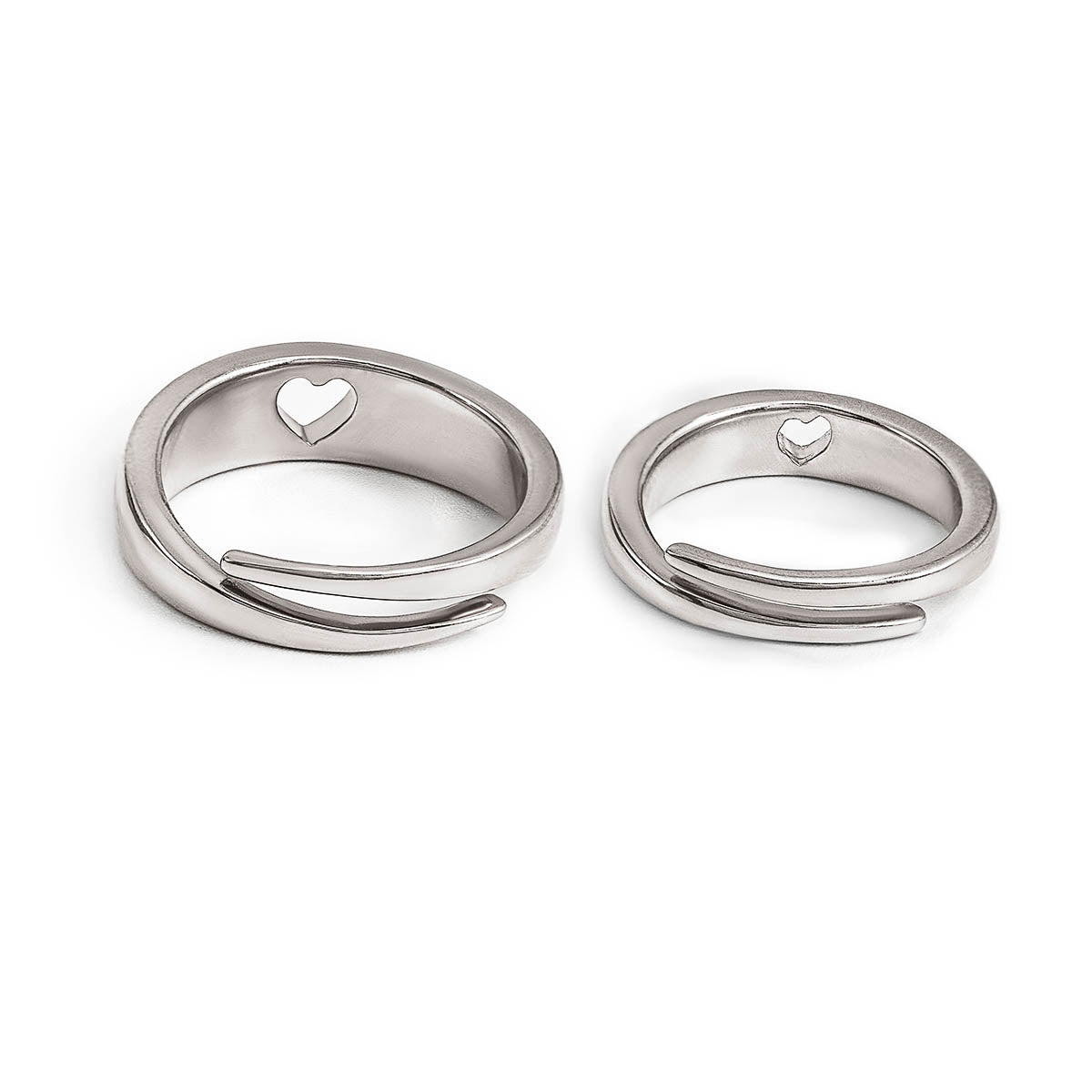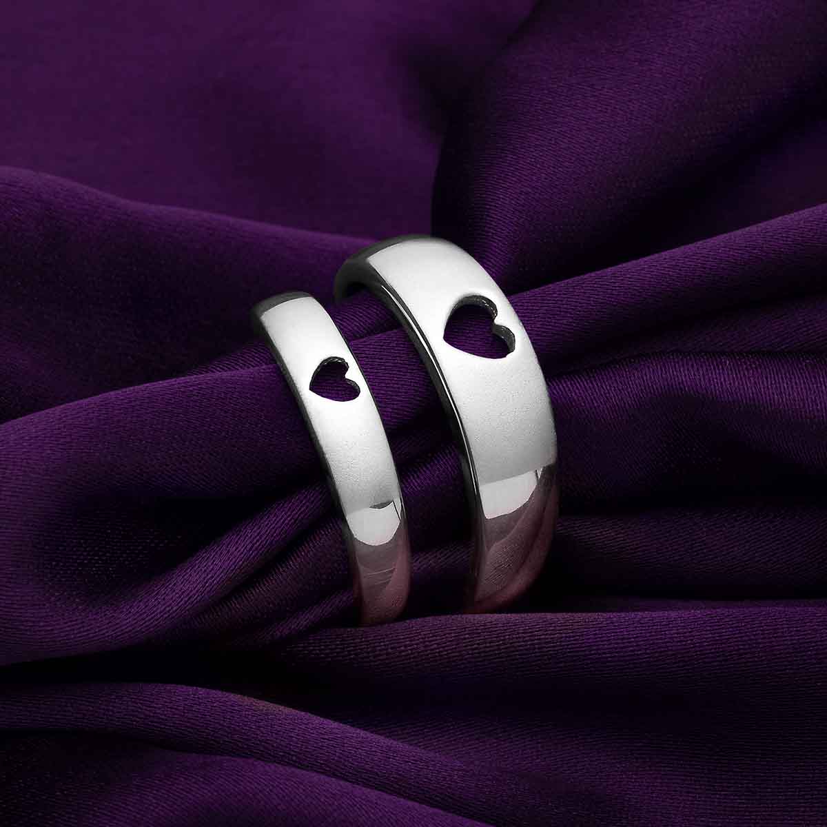 These adjustable couple rings are made in authentic silver and have a lovely design of a hollow and a full heart with an embellished crystal heart and matte finish. Gift these to your soulmate this valentine’s day and express your love.