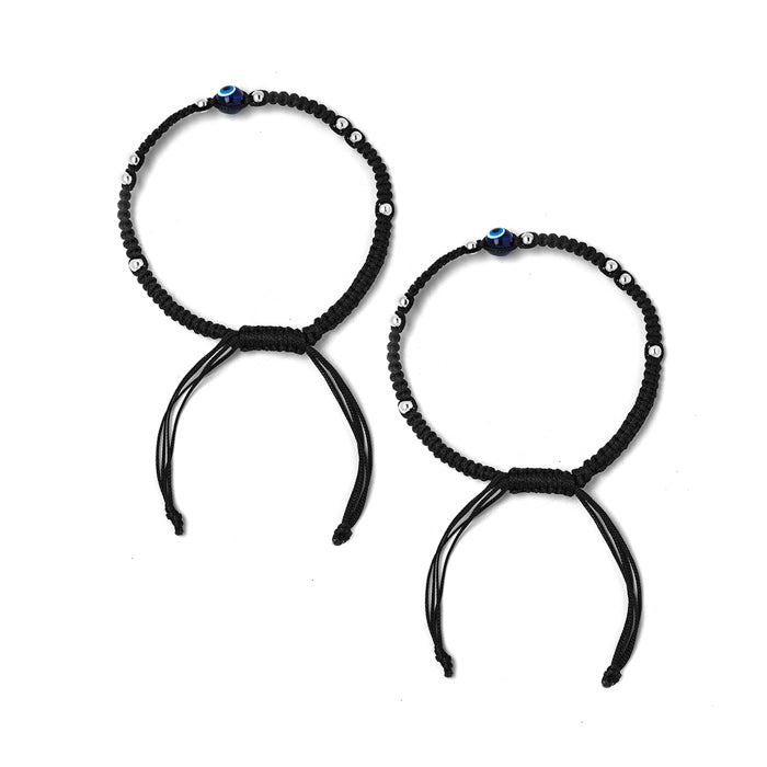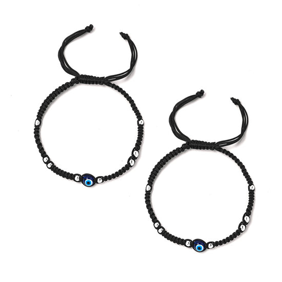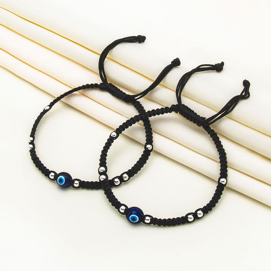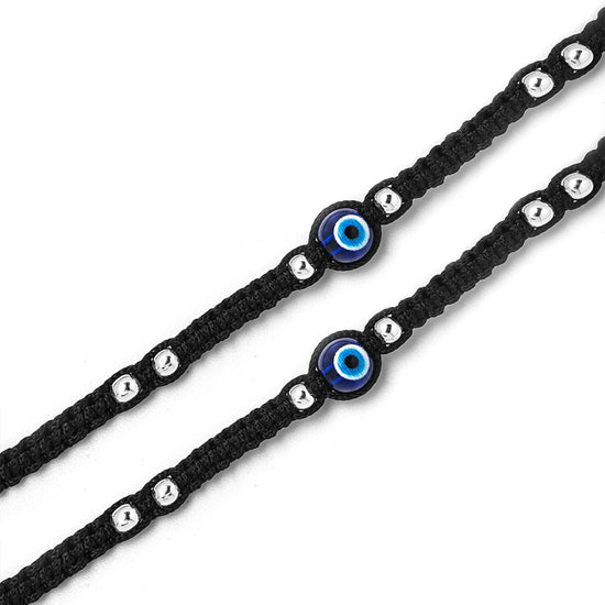 Protect your style with our Silver Evil Eye Thread Pair Of Anklets, the perfect accessory for any outfit. Made with a stunning silver design and adorned with an evil eye charm, our anklet will not only add a touch of sleekness to your look, but also keep you safe from any bad vibes.