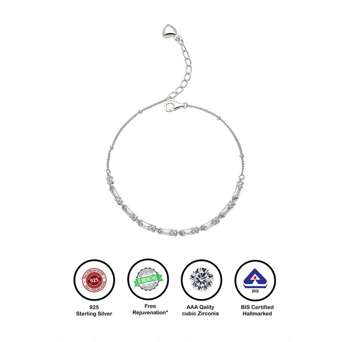 Sparkle and shine! This silver fabulous bracelet is your ticket to effortless elegance. Crafted to catch the light just right, it's the perfect companion for those moments when you want to feel like your best self. Versatile enough for everyday adventures or special occasions—because fabulousness has no dress code.