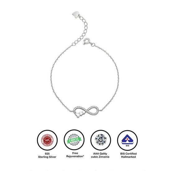 Forever starts now! This silver infinity bracelet celebrates endless possibilities with its iconic symbol of eternity. Sleek, meaningful, and endlessly wearable, it's the perfect reminder that some things—like great style—never go out of fashion.