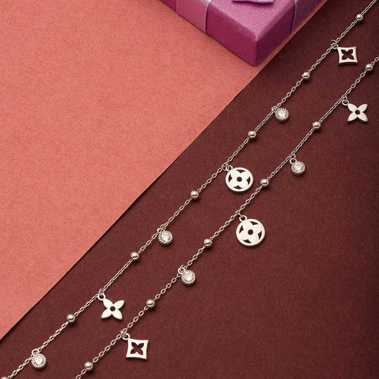 Highlight your style with the Silver Glory Star Pair of Anklets. Featuring charming star-shaped accents, these anklets add a touch of sparkle and elegance to your look. Comfortable and lightweight, they are perfect for adding a graceful shimmer to both everyday and special occasions.