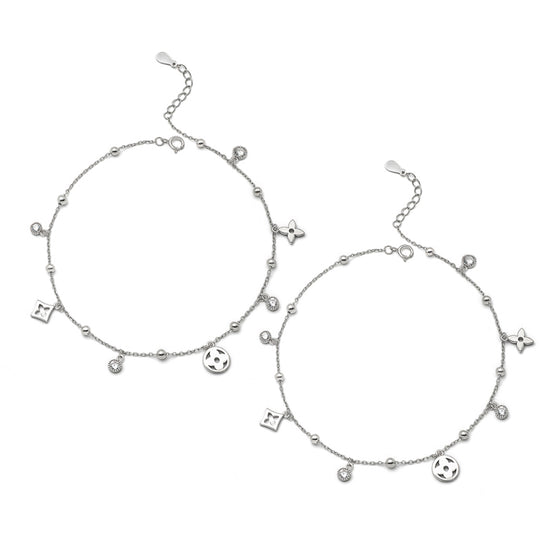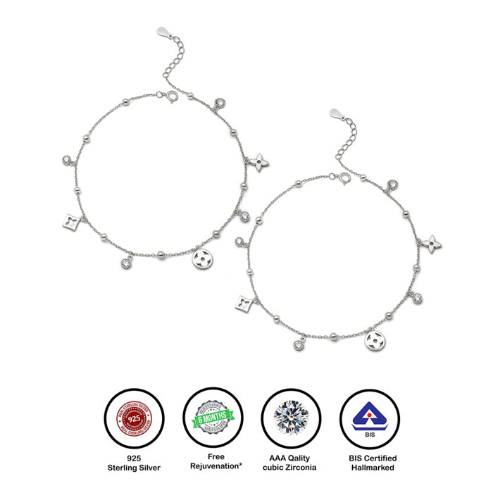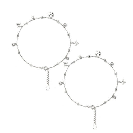 Silver Glory Star Pair of Anklets