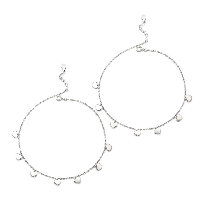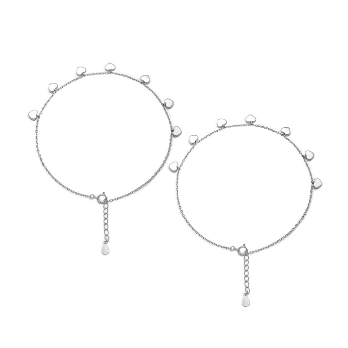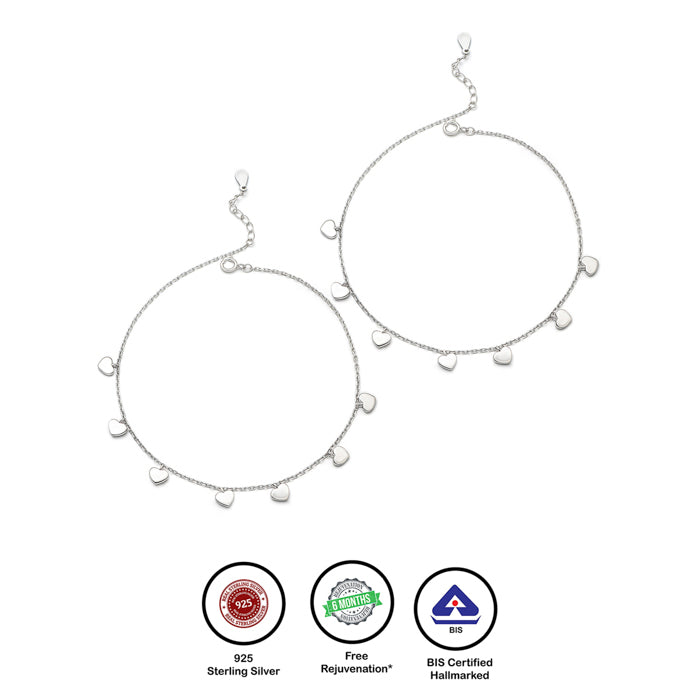 Stand out with the Silver Heartly Pair of Anklets. Bold heart-shaped designs dangle with attitude, adding a fearless edge to your style. Perfect for those who dare to wear their passion on their ankles.