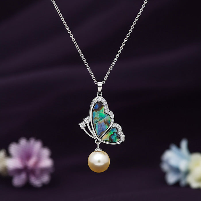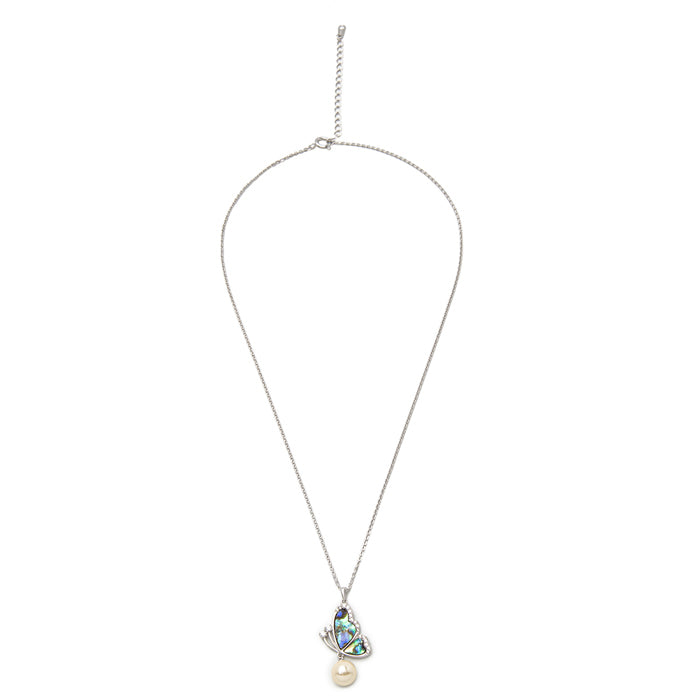 Let your style take flight with this whimsical Silver Pearly Flutter Necklace! Adorned with lustrous pearl details that catch the light beautifully, this sterling silver piece brings a playful sparkle to any outfit.