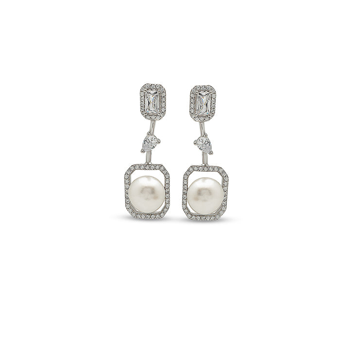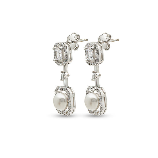 The earrings are lightweight and comfortable to wear, making them perfect for any occasion. Whether you're dressing up for a formal event or adding a touch of glamour to your everyday look, the Silver Precious Pearl Earrings by Silberry are the perfect choice. Order now and elevate your style with this timeless piece.