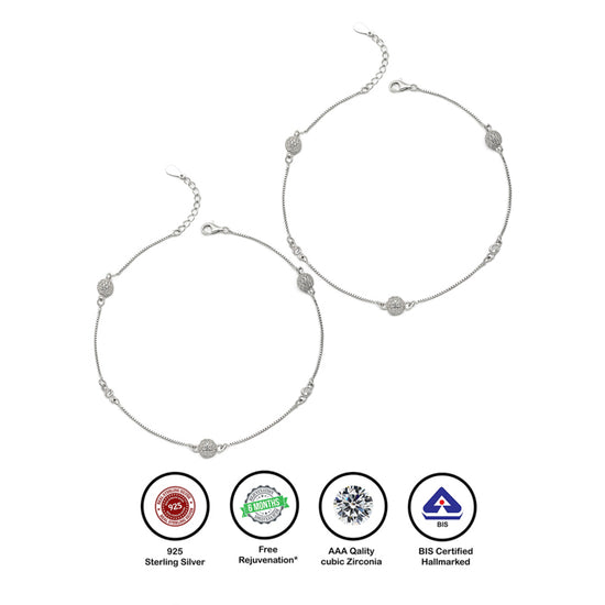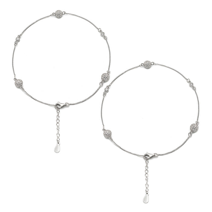Get twisted in style with the Silver Curved Infinity Pair of Anklets! This unique anklet features a sleek curved design, symbolizing infinite possibilities. Made of high-quality silver, it's the perfect accessory for adding a touch of playfulness to any outfit. Wear it on the go or to add some flair to your next beach day. The options are endless with this quirky anklets.