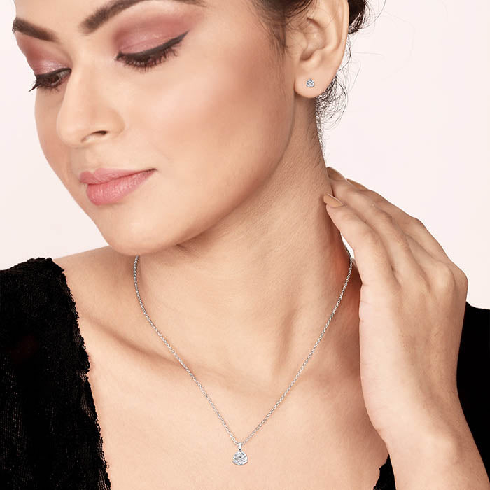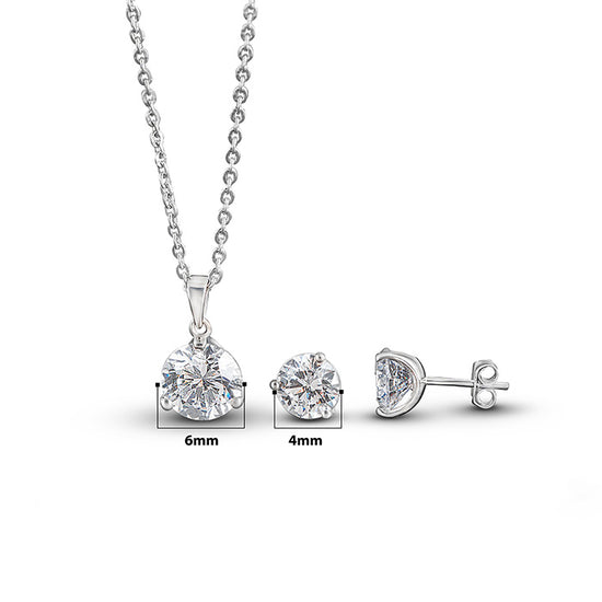 Silver Solitaire Dream 4 mm Earrings with 6 mm Pendant Set